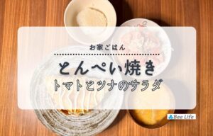 【お家ごはん】レンジで作る!とんぺい焼き、トマトとツナのサラダ