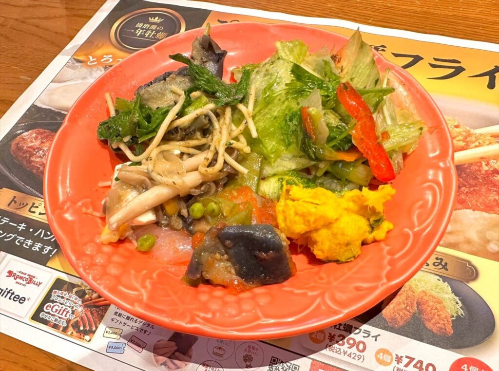 このメニューにはサラダバーが付いているので、まずはサラダを楽しみます。
