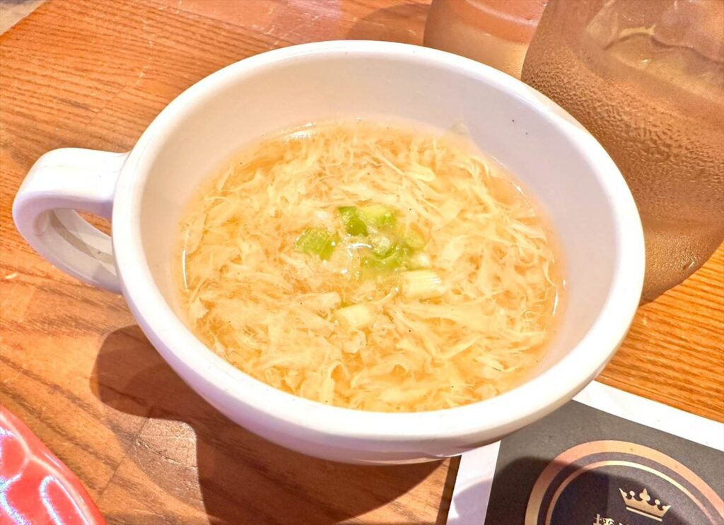 ▲セットの卵スープが運ばれてきました。シンプルで美味しい。