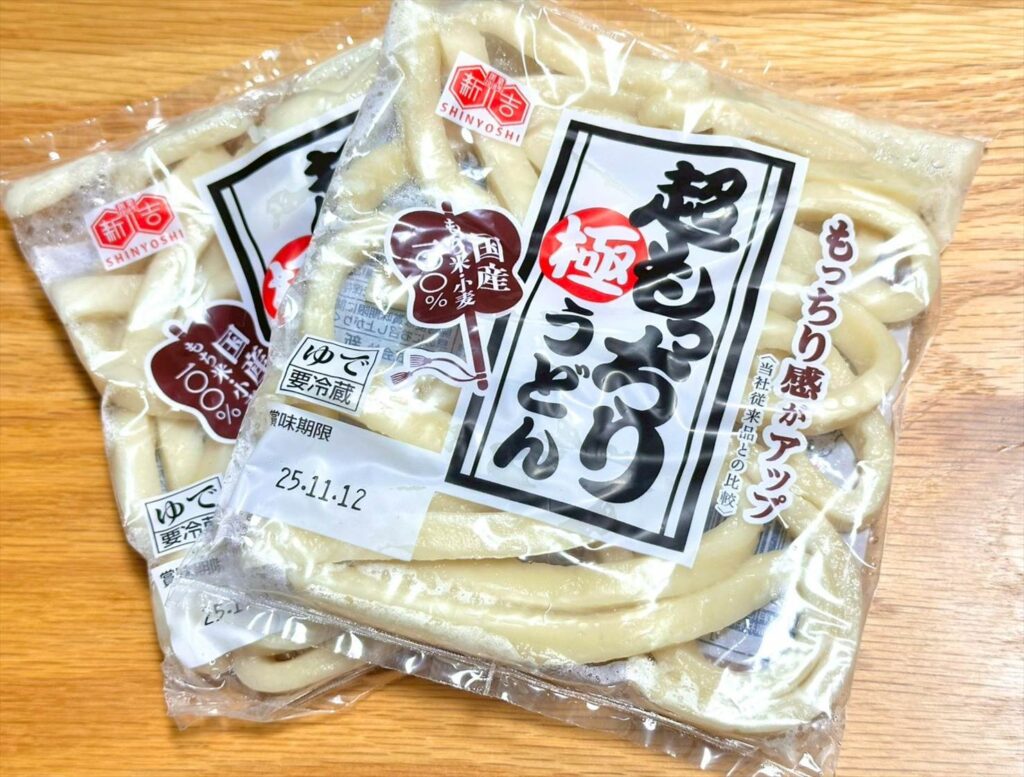 今回はぷらはさんにうどんのお使いを頼んだところ、「超もっちり極うどん」を買ってきてくれました。