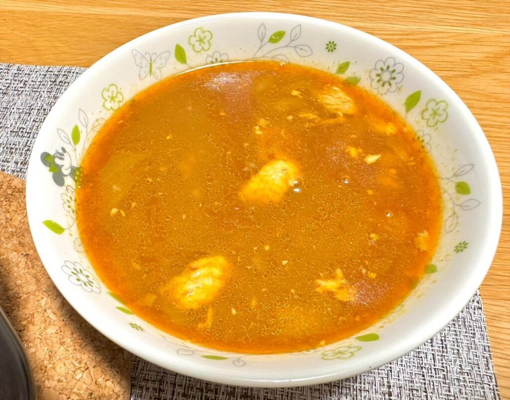 前々日にいただいたロティサリーチキンの余りで作ったカレーが余ったので、更にリメイクしてカレースープにすることに。
