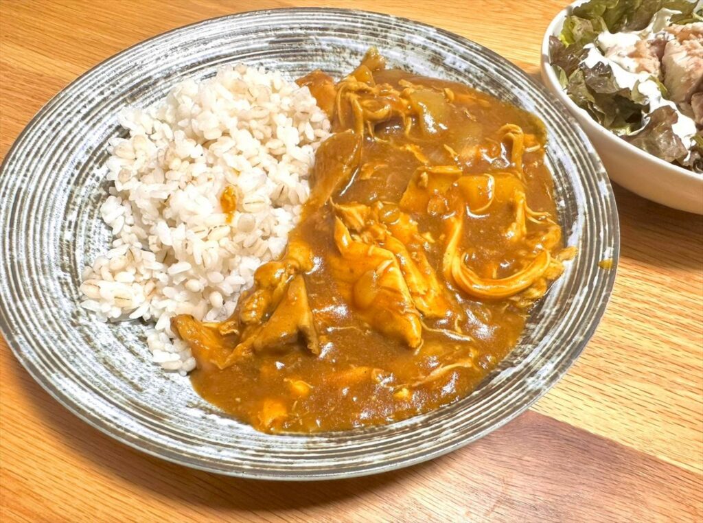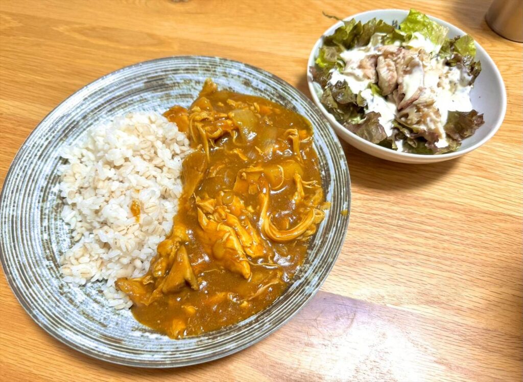 【お家ごはん】コストコ ロティサリーチキンの余りでチキンカレー&サラダ