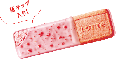 苺チップ入りチョコの美味しさと、発酵バタークッキーでサンドした苺アイスのおいしさが1つで楽しめる、かわいいピンク色の恋味いちごアイス。