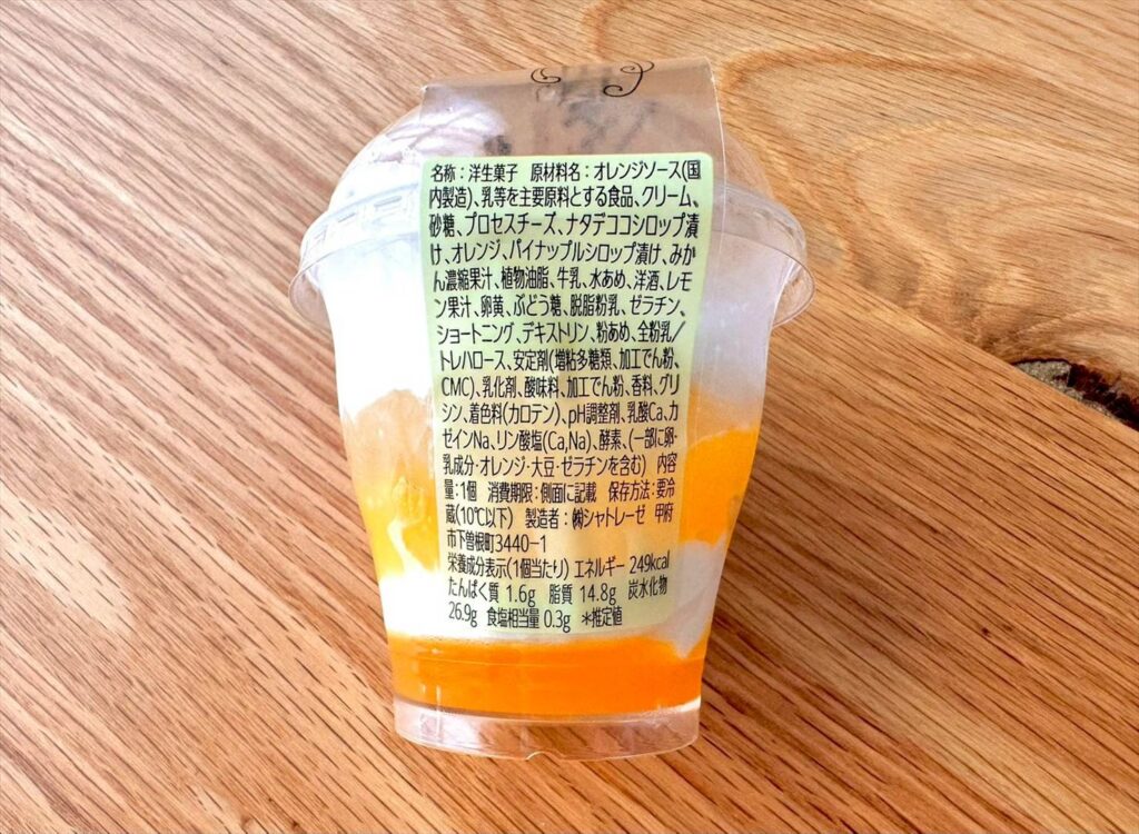 今回はシャトレーゼの「Dessert(デザート)パルフェ パイン&オレンジ」をいただきました。