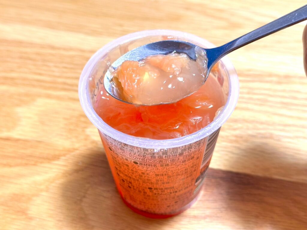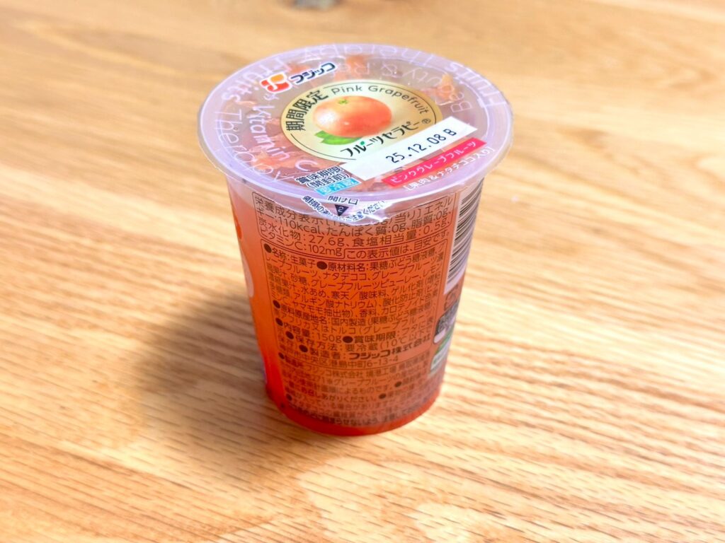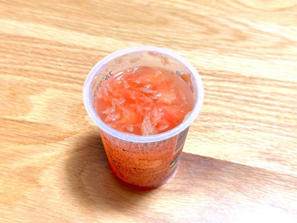 市販で買えるゼリーの中で相当美味しい部類。ピンクグレープフルーツ味、期間限定なのは寂しいね…。