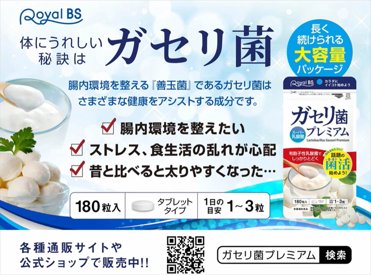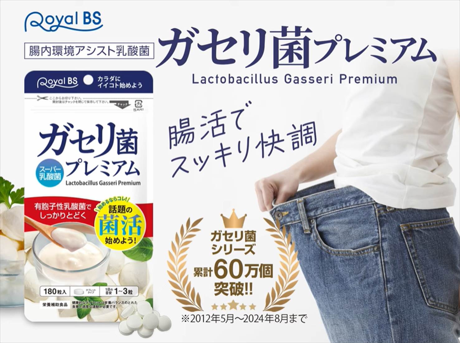 「ガセリ菌プレミアム」は、乳酸菌の一種であるガセリ菌を手軽に摂取できるサプリメント。腸内環境をサポートし、体の内側から健康を整える商品です。