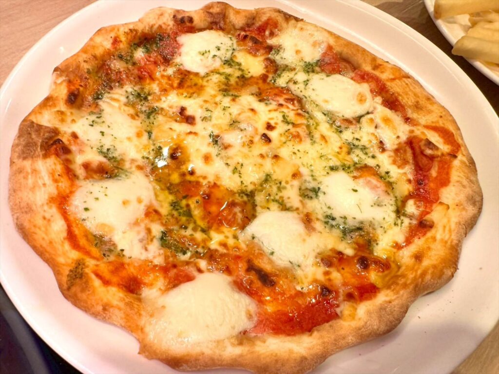 そしてたっぷり載せられたモッツァレラチーズに、キリッとした酸味のあるトマトソース、濃厚なバジルソースのバランスが最高!