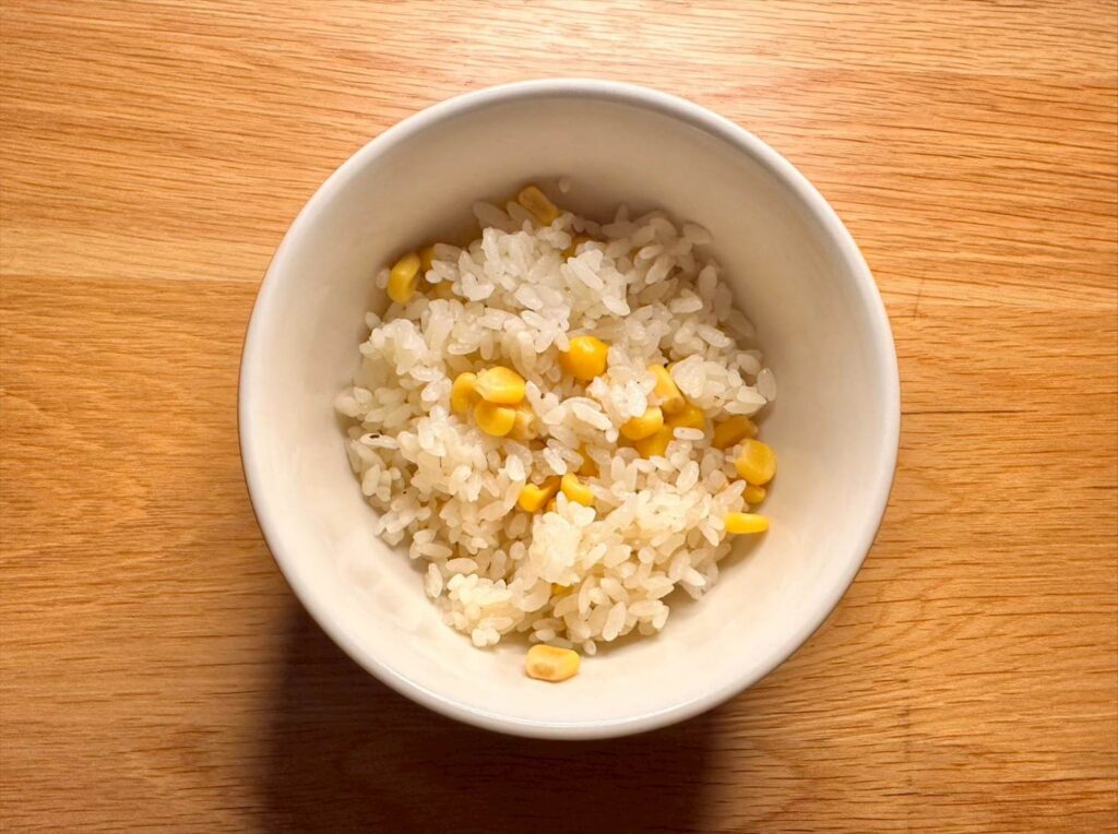 ▲昨日炊いたコーンご飯。洋食メニューによく合います。