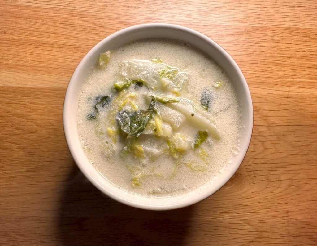 ▲白菜がちょうどよい量余っていたので、こちらは牛乳を使ったスープにしてみました。