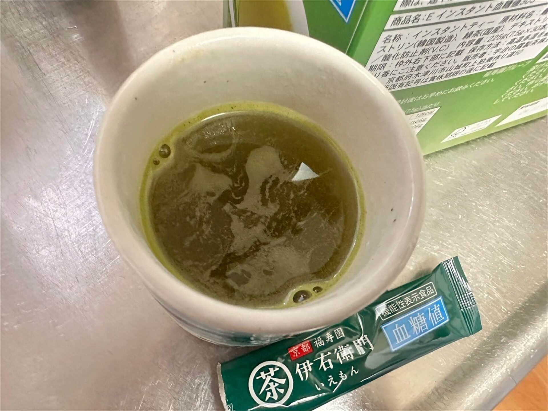 淹れた直後はこんなふうに若干分離してしまいましたが、混ぜたら普通の緑茶と変わらない見た目になっていました。