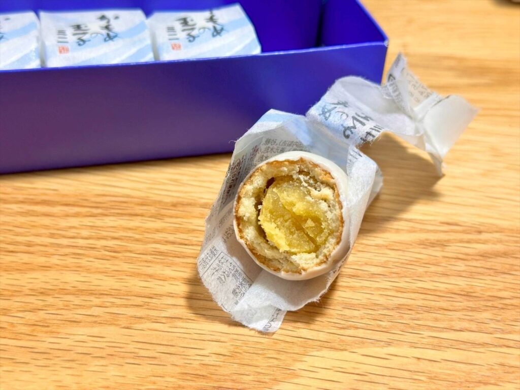 ▲食べてみると、中にはほくほくの餡がまるで玉子の黄身のように詰まっていました。
