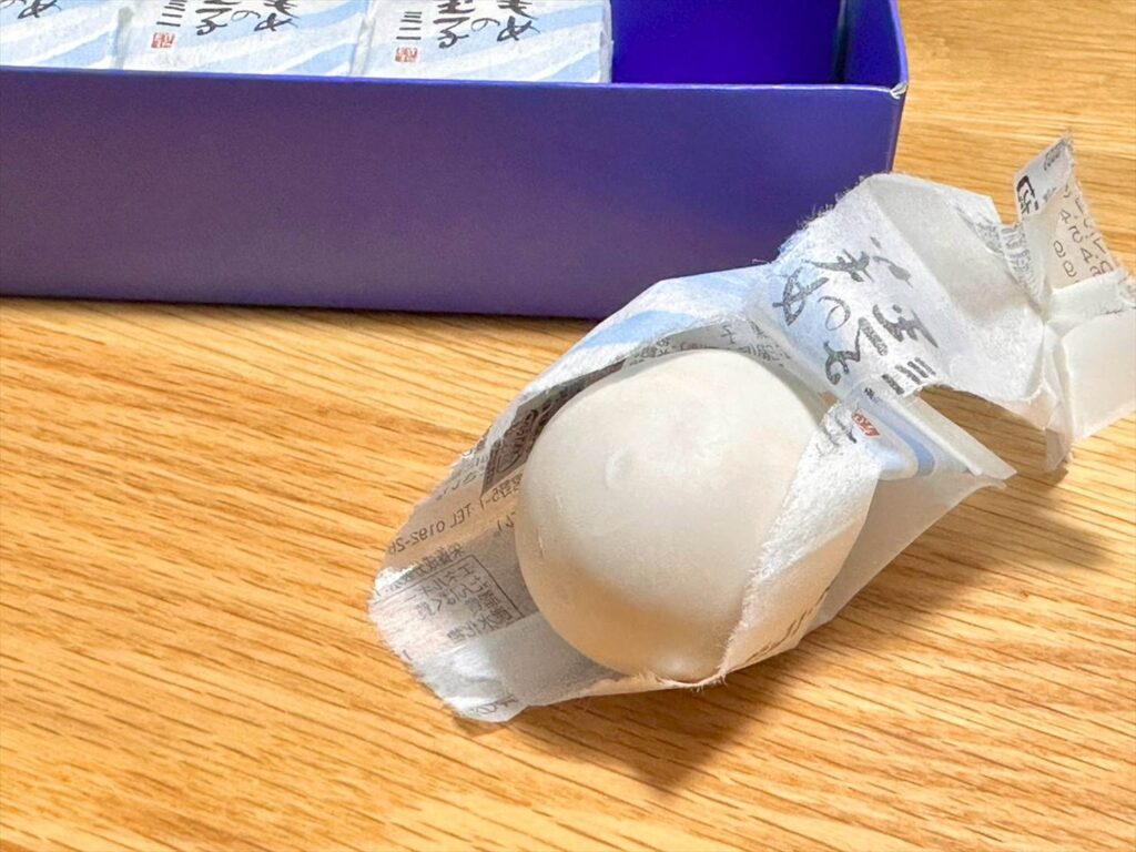 開封すると、まるで玉子のようなツルンとしたお菓子が登場。