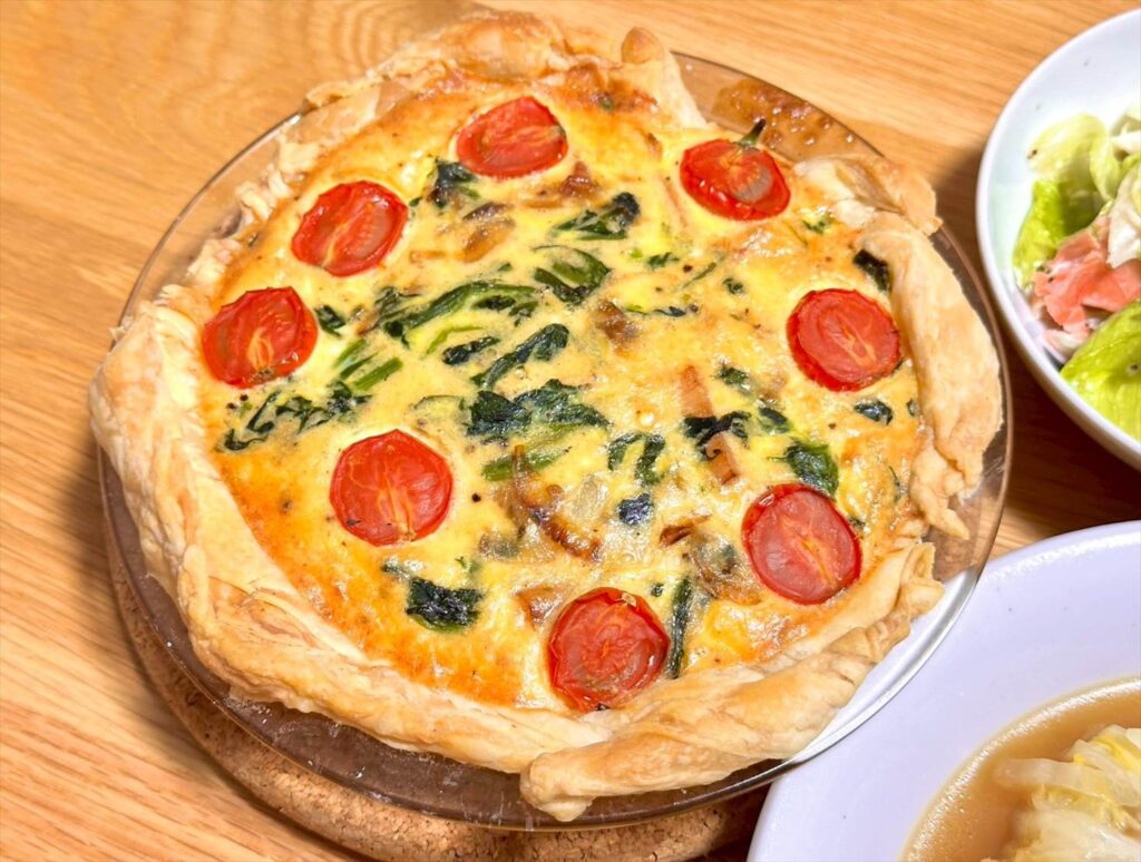 ▲キッシュはシンプルにベーコンとほうれん草を使ったもの!