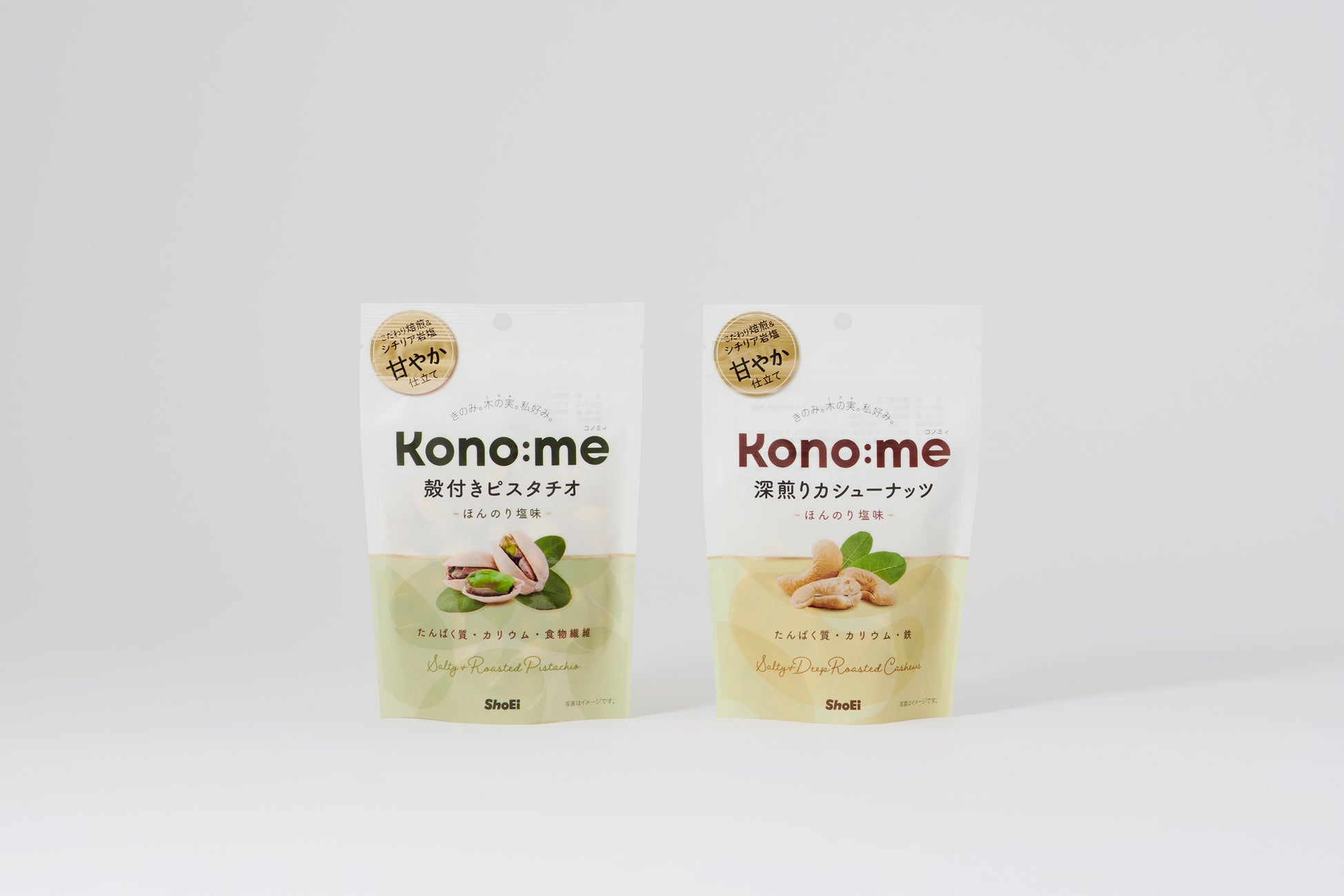 21年の新工場稼働に伴い、オリジナルの焙煎機導入を行い、量だけでなく質も上がった正栄食品のナッツを、より多くの方に召し上がっていただきたいという気持ちが強くなり、当社としては新規ルートとなる、菓子・加工食品チャネル商品として、新ブランド「Kono:me」を立ち上げる事となりました。