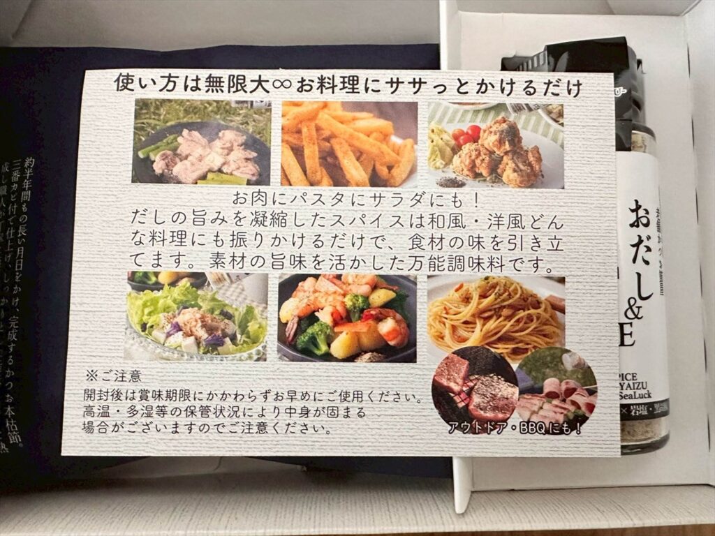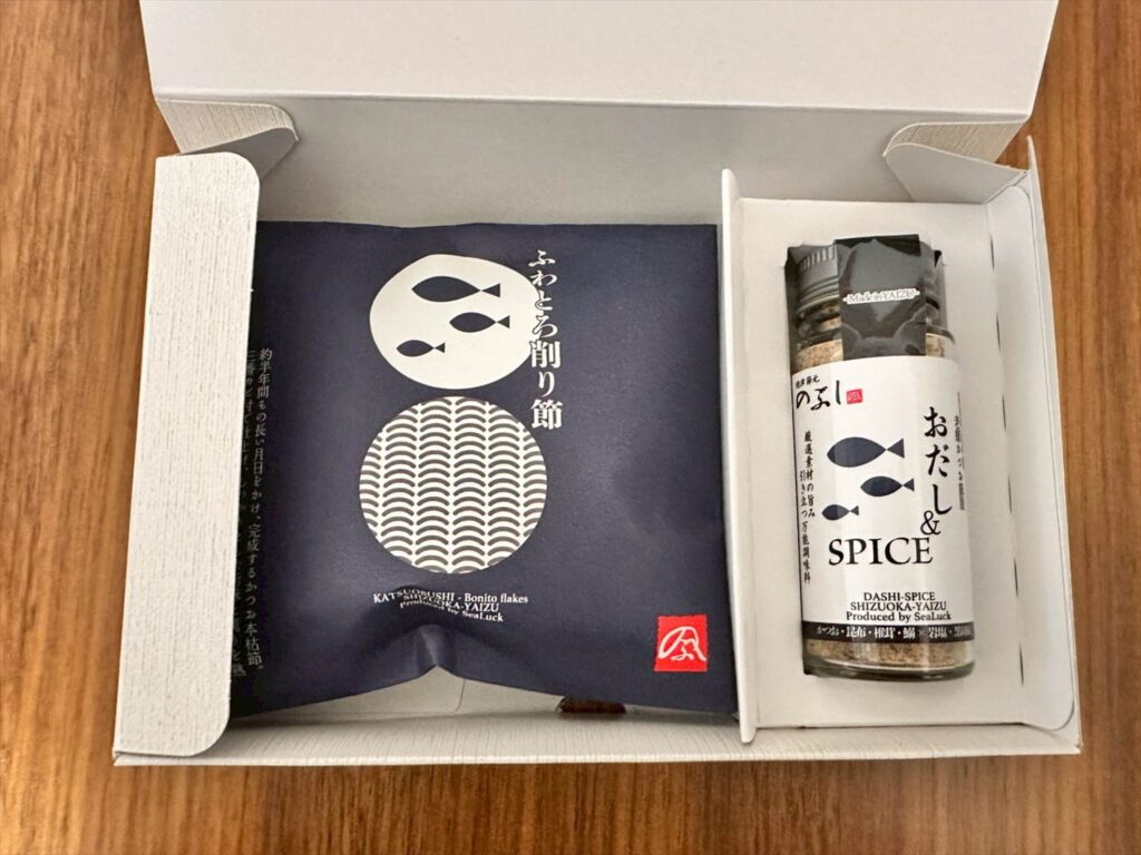 お引き出物としては、おだしスパイスとふわとろ削り節がセットになっていました。