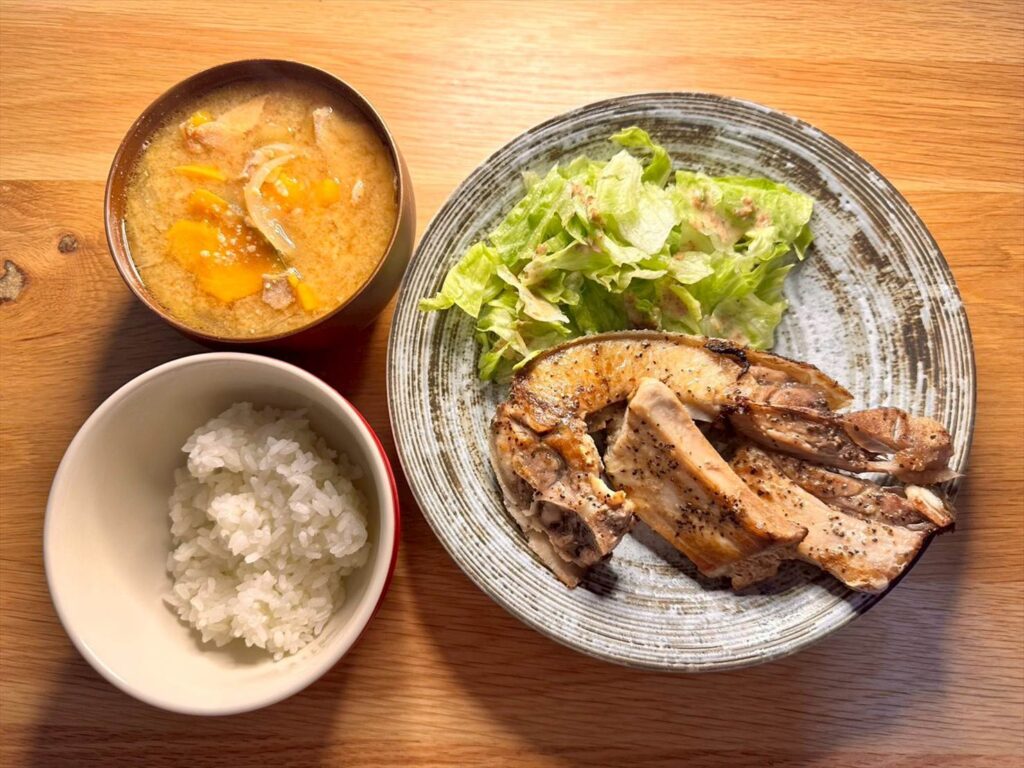 【お家ごはん】まぐろのカマ焼きと豚汁の定食風ごはん