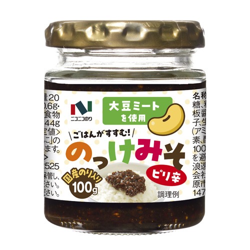 ニコニコのりの大豆ミートののっけみそは1瓶100gと程よいサイズ感。