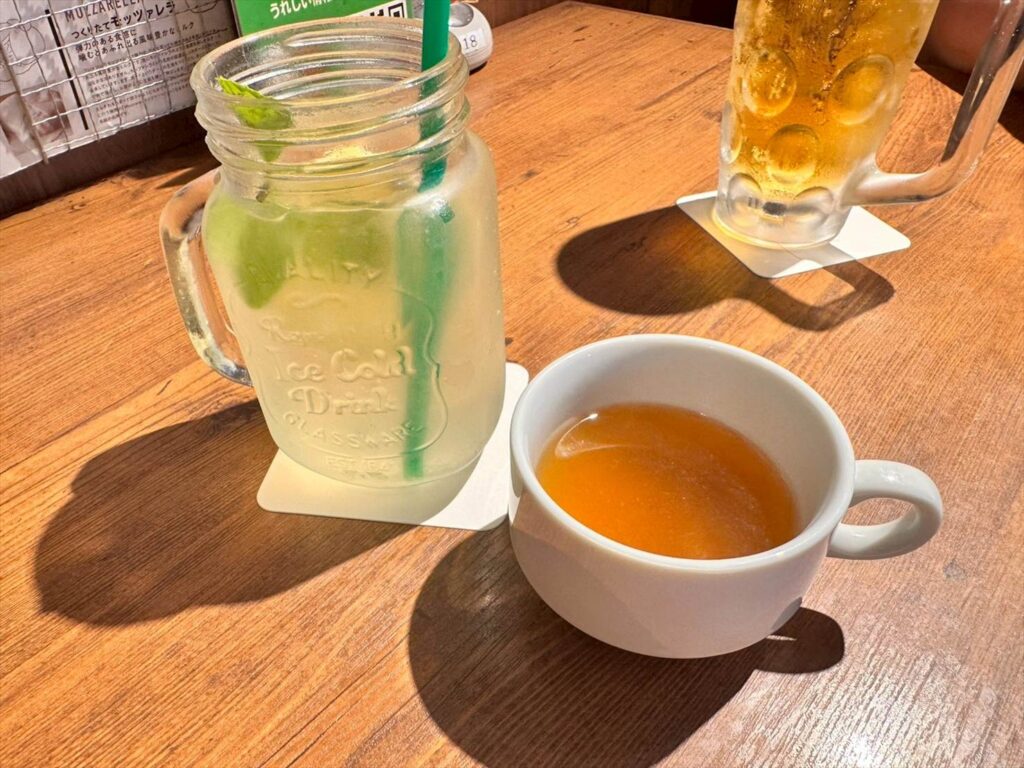 瓶のおしゃれなグラス(ジャー?)に入れて提供いただくタイプで、中にスライスレモンとミントも入っており、濃厚なはちみつと爽やかなレモンの味が美味しかった!