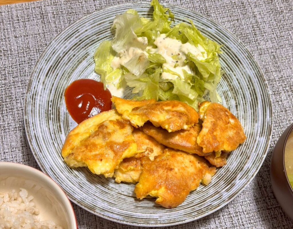 【お家ごはん】ささみのピカタとシーザーサラダ、味噌汁