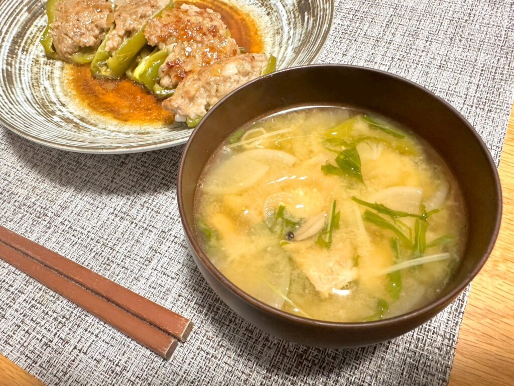【お家ごはん】ピーマンの肉詰めと豚汁