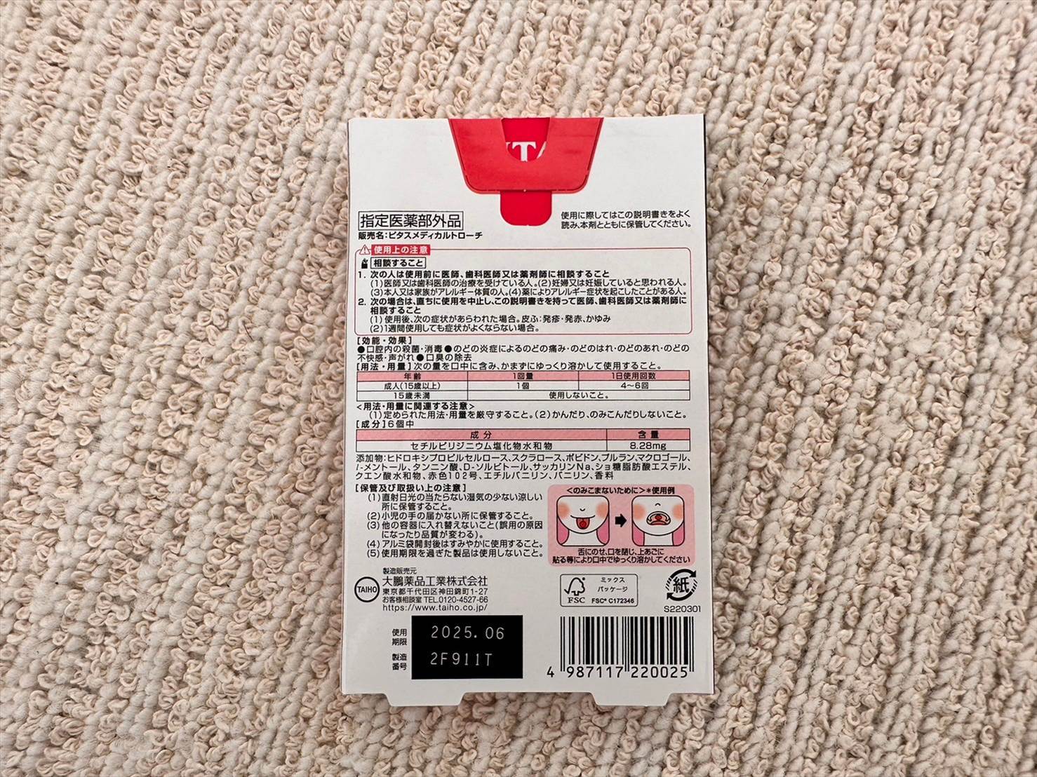 今回の記事では、サンプルボックス内の商品の一つ「ピタスメディカルトローチ」をご紹介。
