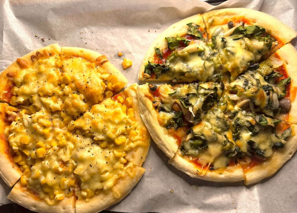 業務スーパーで販売しているピザ生地「ナポリ風ピザクラスト 19cm」を用いて、今回は二種類作ってみました。