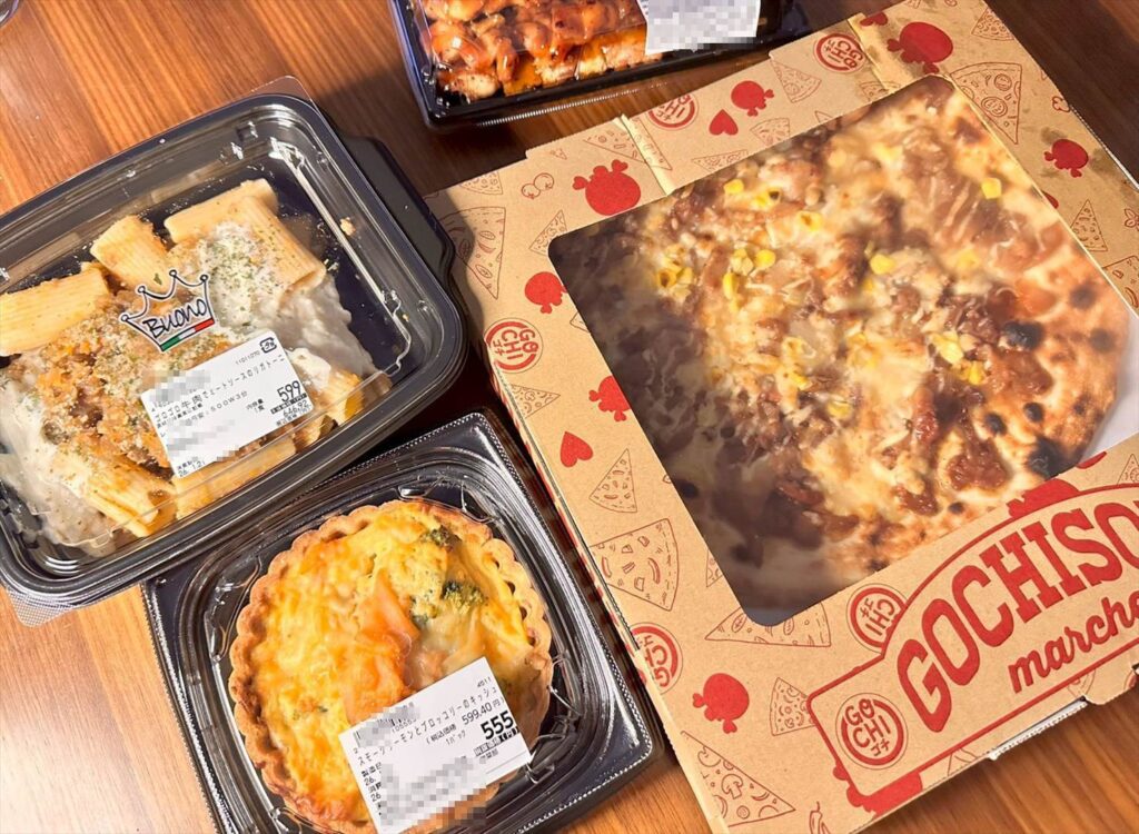 【お家ごはん】ロピアのお惣菜でパーティ風!照り焼きチキンピザとキッシュ、リガトーニと焼き鳥
