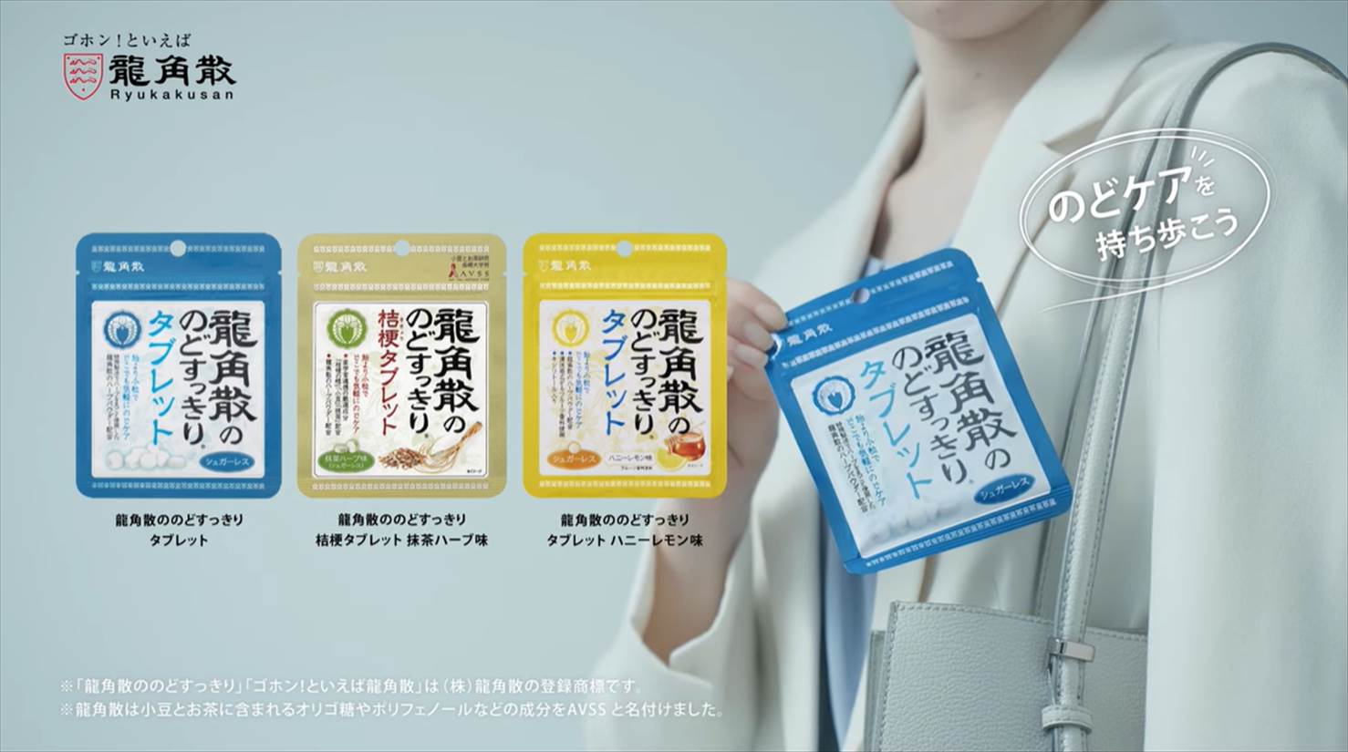のど飴を舐めたいけど時間がないから、細かく砕いて舐めているんです・・・。こんなのど飴ご愛用者の一言から誕生したのが「龍角散ののどすっきりタブレット」。のど飴より小粒なので、すき間時間にサッとのどケアができます。