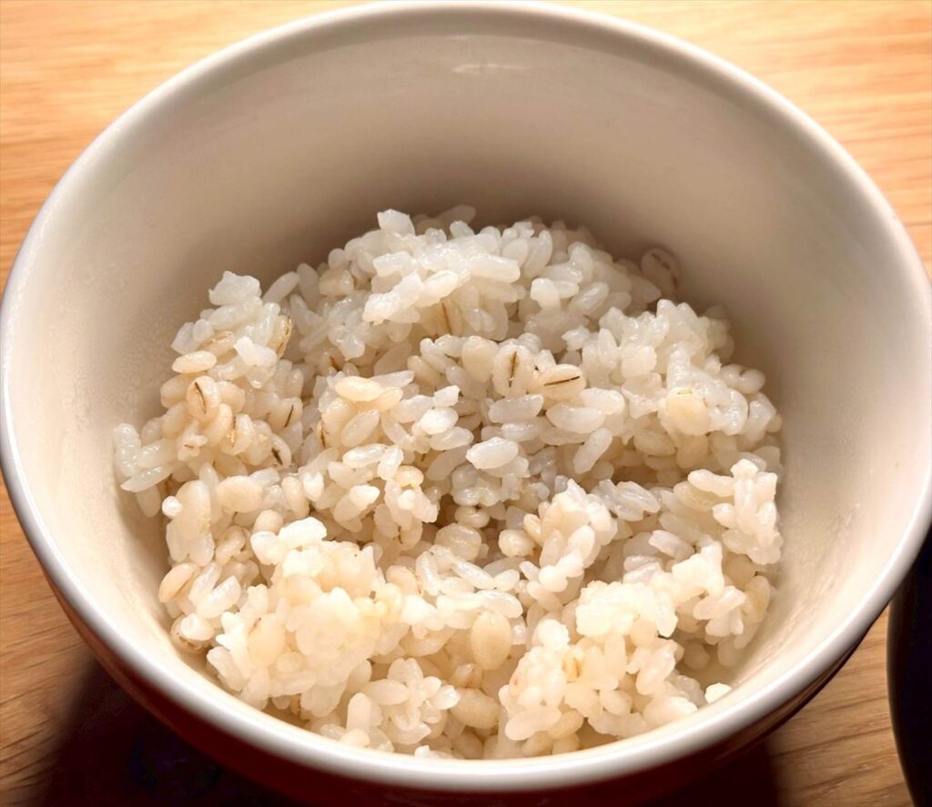 ▲いつものもち麦ごはん。