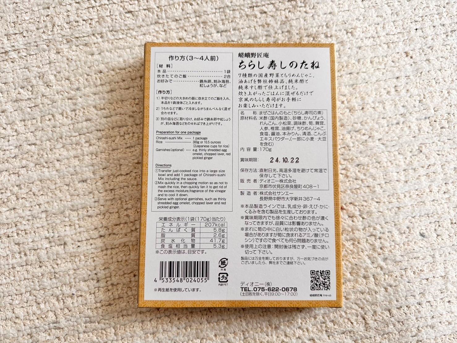 「嵯峨野匠庵 ちらし寿司のたね」はディオニーが提供するちらし寿司を作れる商品。