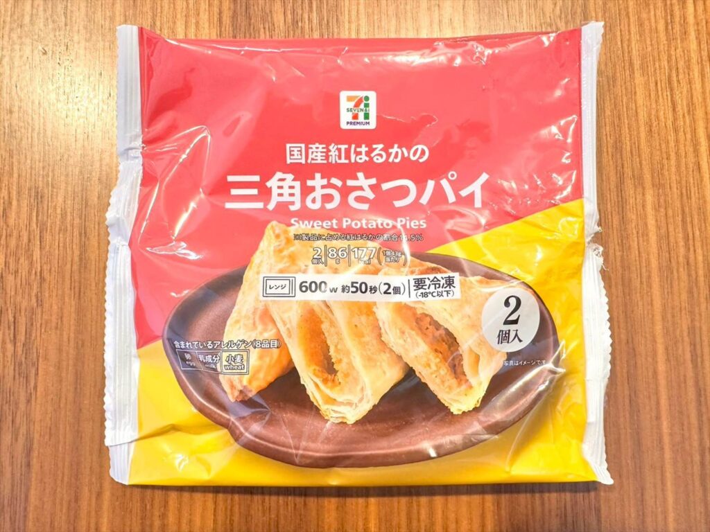 今回はセブンイレブンの冷凍スイーツ「国産紅はるかの三角おさつパイ」をいただきました!