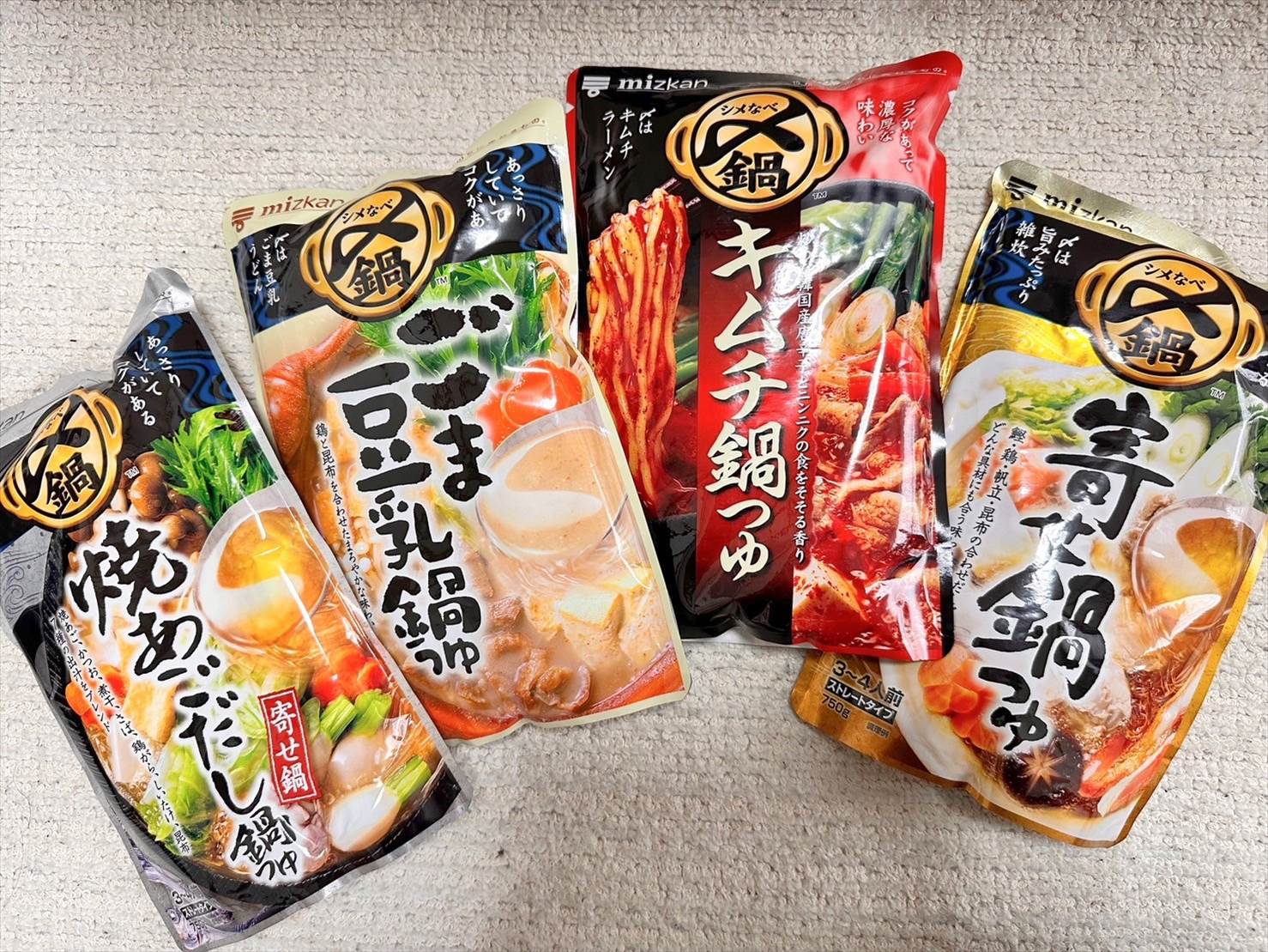 ▲今回のRSPサンプルボックスには全4種類の「ミツカン〆鍋シリーズ」のつゆが入っていました!どれも美味しそう…!