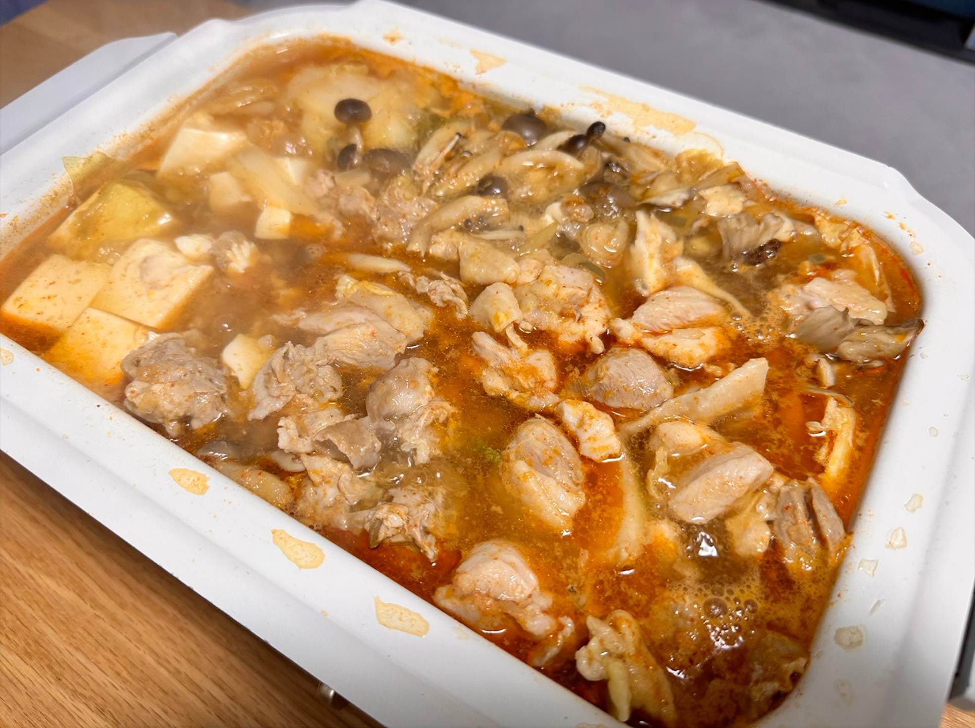 後はここに鍋つゆを入れて煮込むだけ。鍋つゆ以外に味付けなどは一切不要なので、この手軽さがまた癖になりそうです~!