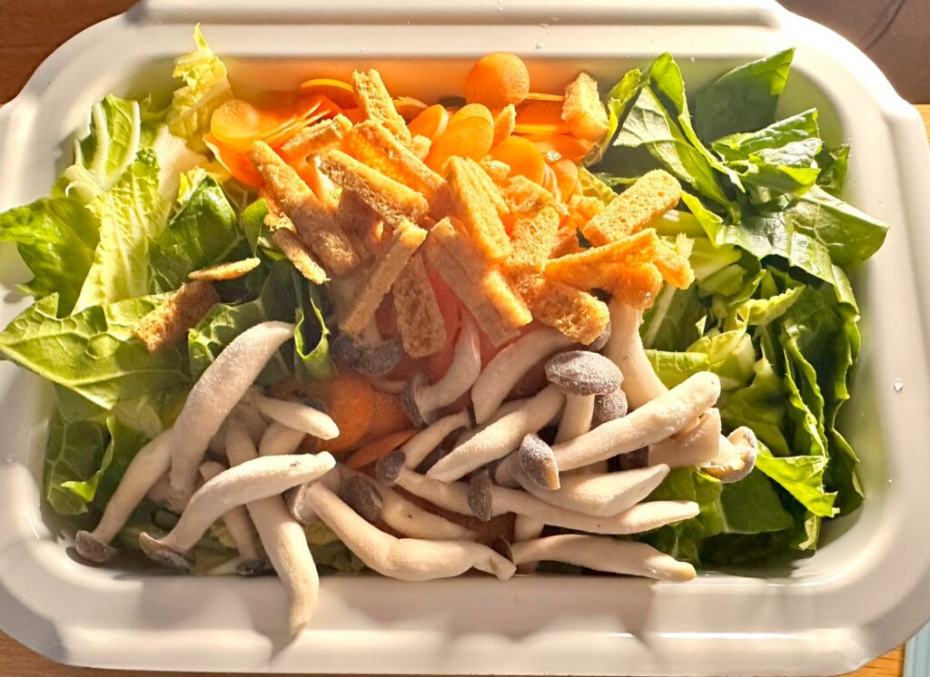 今日はスーパーでたっぷりお野菜を購入したため、「〆鍋 焼あごだし鍋つゆ」を用いてお鍋にすることにしました!
