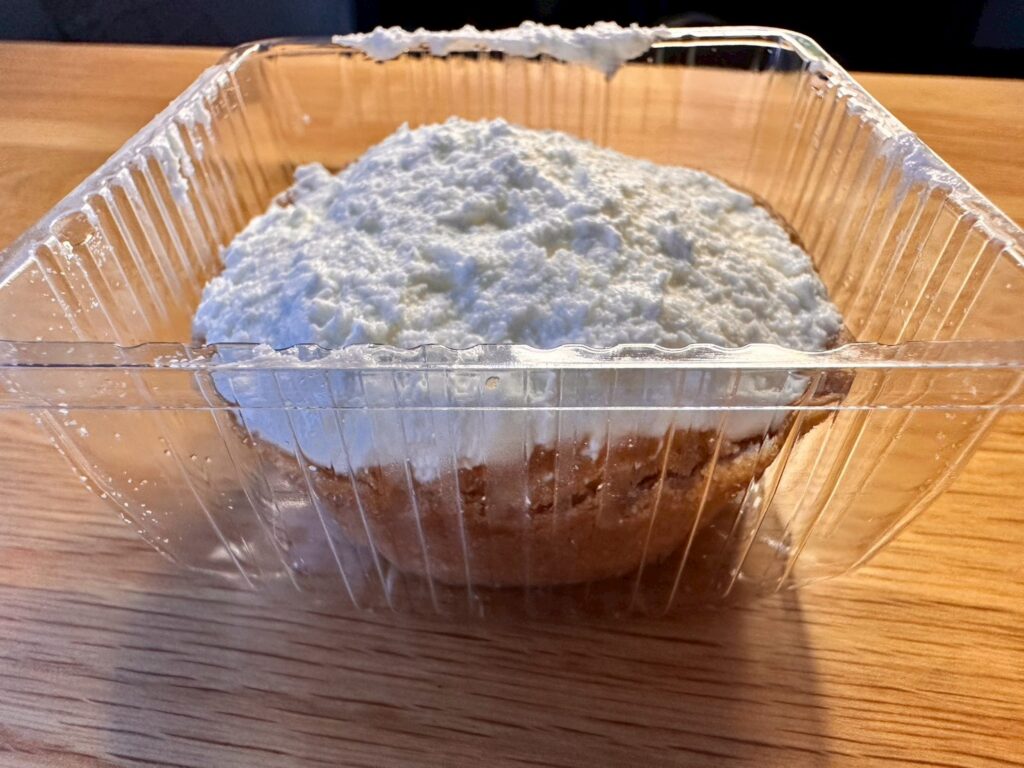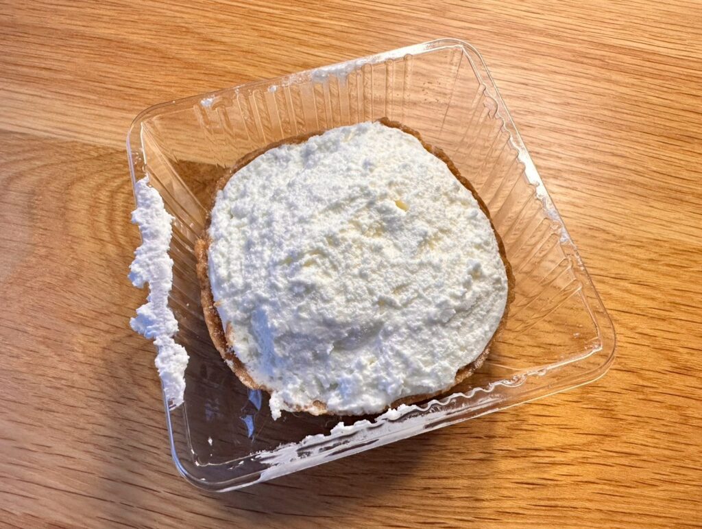 帰宅時にカバンの中でぐるんぐるんされてしまったからか、上のドーム状に盛られているクリームが見事にパッケージに付いてしまいました…。ぐぬぬ。
