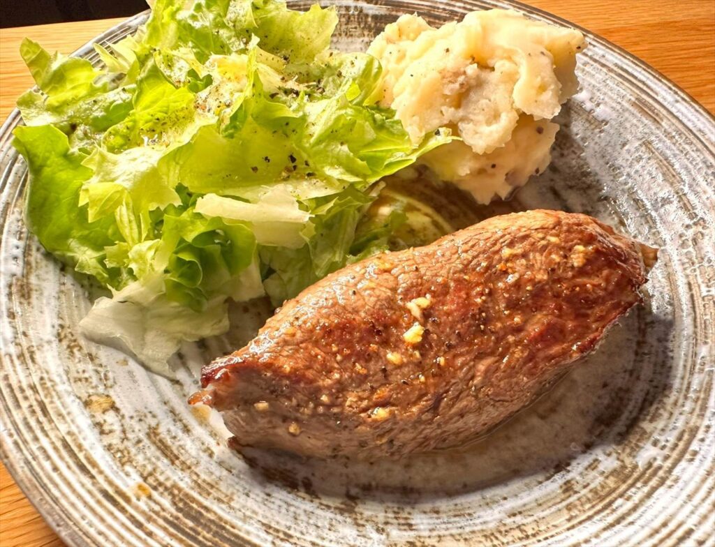 今日は昨日のパーティで余ったミスジステーキ肉があったため、こちらをメインとしたメニューにしました!
