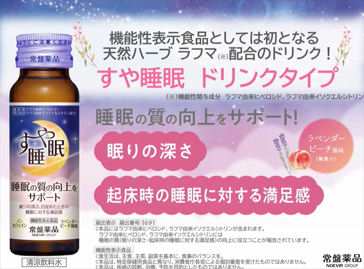 「すや睡眠 ドリンクタイプ」は、眠りの質をサポートするために作られたリラックスドリンク。