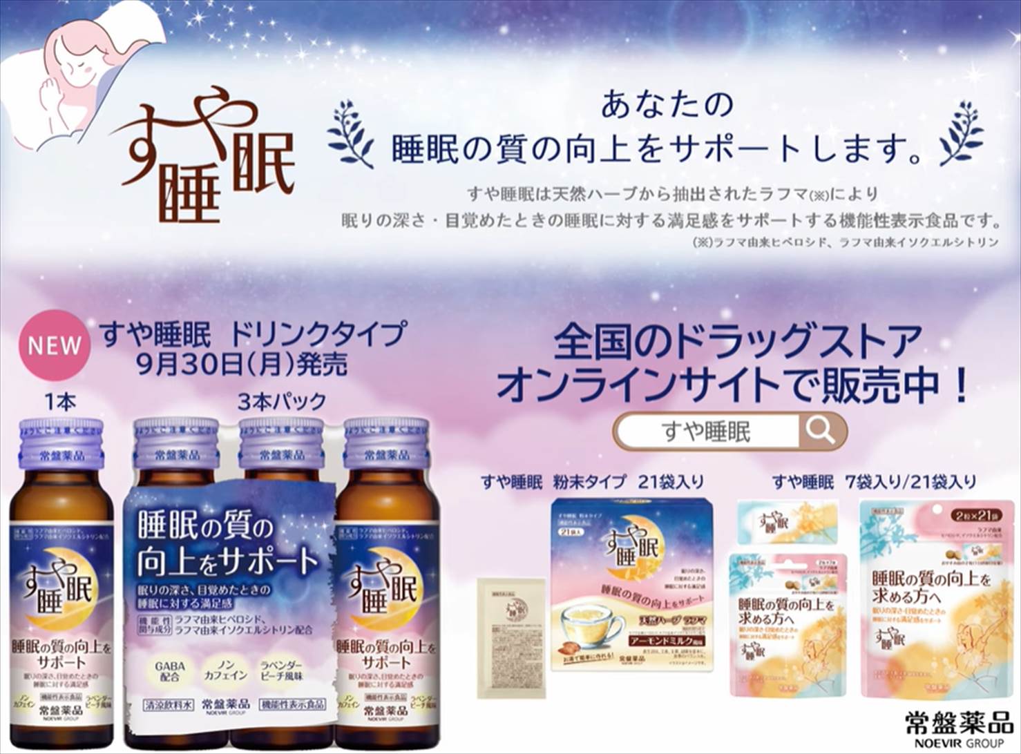 それなら「すや睡眠 ドリンクタイプ」なんてどう?気軽に飲めて、睡眠の質をサポートしてくれるらしいよ!