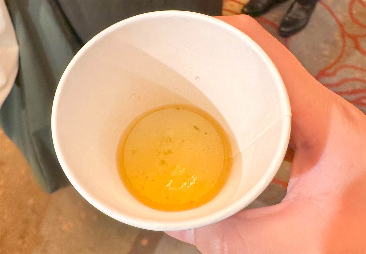 ▲ブースではうどんスープをシンプルにお湯に溶いたものを試食させていただきました。